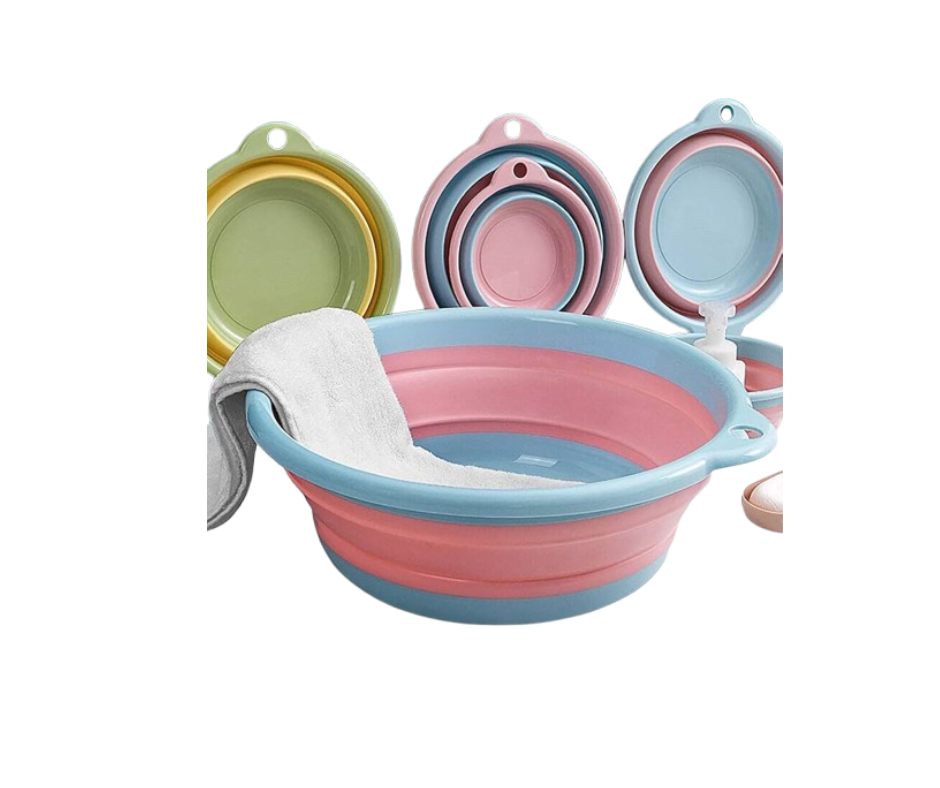 -Diseño plegable: la cuenca reutilizable tiene un diseño práctico que ahorra espacio y se puede almacenar de manera eficiente.