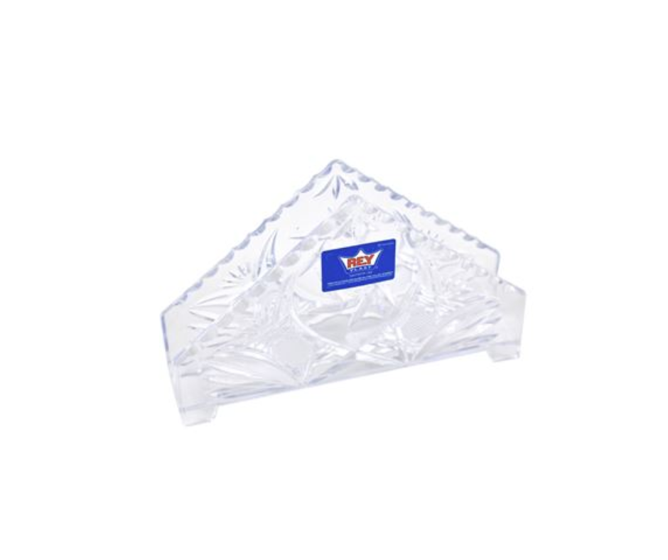Utensilio trasparente para colocar servilletas. Cuenta con un lindo decorado para dar elegancia a la mesa.